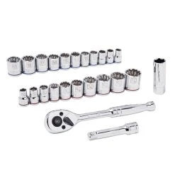 Kobalt Set Chrome 24-Piece (3/8-In) Mechanic Standard (Sae) Metric Combination Polished
