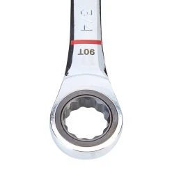 - 12-Point ratcheting box end allows work on multiple fastener types including 6-point, 12-point, square, star and some rounded