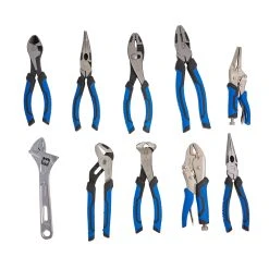 - Set includes 9 commonly used pliers and 1 adj. wrench